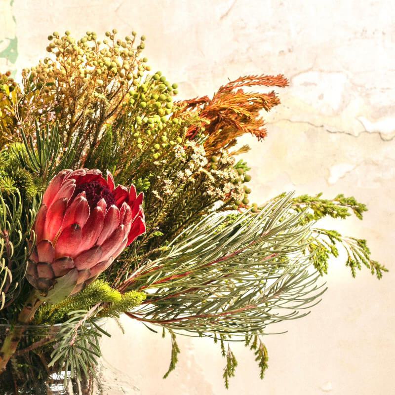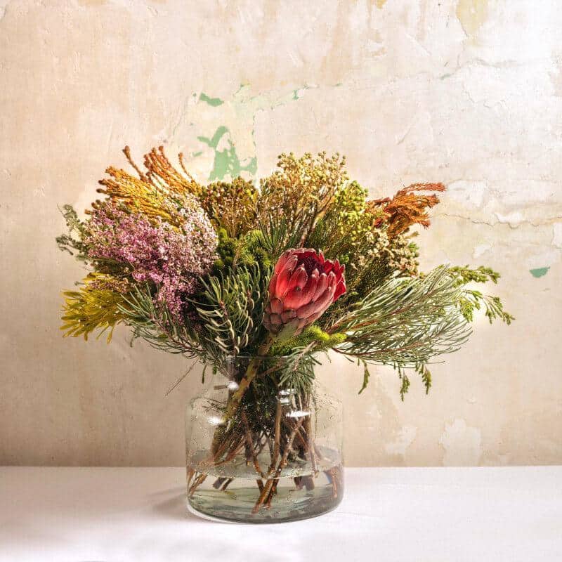 Carefully crafted with great attention to detail, it includes a variety of African greens, proteas, brunias, and scabiosa, among other species. You’ll be amazed by its long-lasting beauty, which remains stunning even when dried. Undoubtedly, the perfect choice if you want to gift a unique bouquet that can be enjoyed for years.