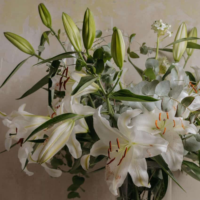 An elegant, fragrant bouquet full of character, designed to be enjoyed slowly and to celebrate the natural beauty of white lilies.
