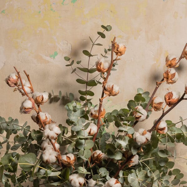 Discover the delicate freshness of our Mia Bouquet, an elegant arrangement featuring cotton flowers and natural eucalyptus. Its combination brings a sophisticated and relaxing touch, perfect for decorating any corner of your home.