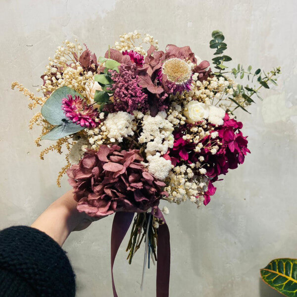 Esto es precisamente lo que representa este ramo compuesto por diferentes variedades de flores preservadas como la paniculata, hortensias o eucaliptos.