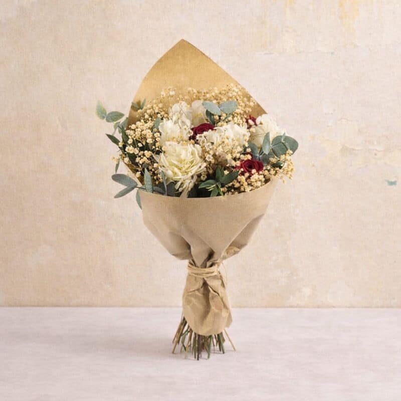 Está compuesto por flores 100 % naturales que han sido sometidas a un proceso especial de preservación, gracias al cual conservan su textura, color y apariencia fresca durante años, sin necesidad de agua ni cuidados especiales. Un ramo que mantiene la esencia de la primavera intacta día tras día.