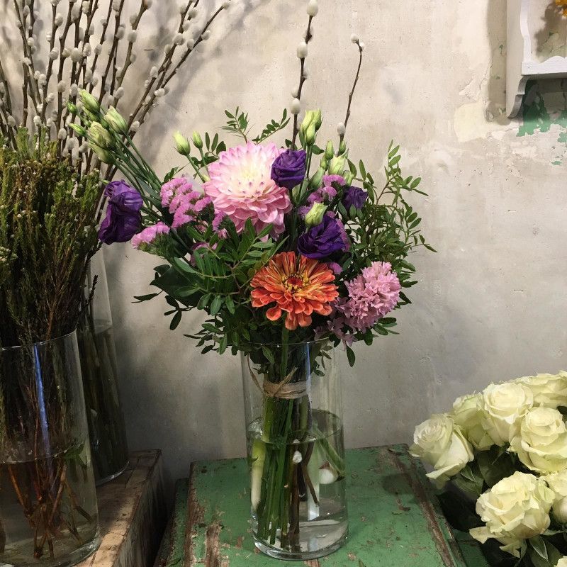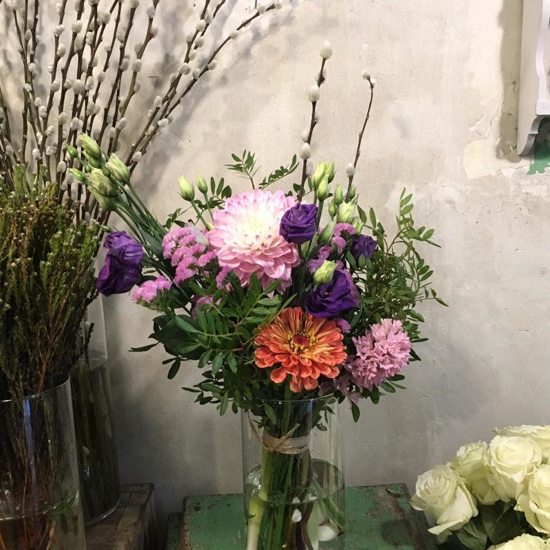 Está elaborado con flores frescas de temporada, seleccionadas en el mejor momento y combinadas en una mezcla de tonalidades y formas que varía según la disponibilidad. Cada ramo es único, pero todos mantienen el mismo espíritu: composiciones equilibradas, coloridas y de gran calidad. Las imágenes son orientativas; tu ramo será siempre de características iguales o superiores.