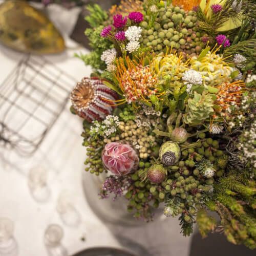 Está elaborado con flores y verdes silvestres, cuidadosamente seleccionados y combinados para crear una composición rica en texturas, volúmenes y matices. Cada ramo es único, con una mezcla equilibrada de formas y tonalidades que reflejan el sello inconfundible de Adhoc Flores.